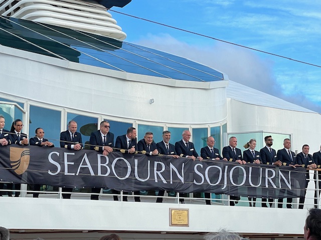 On Feb 18, 2024 we enjoyed another Seabourn Signature Event — the Epicurean & Team Member Salute. This event takes place on the pool deck and Epicurean delights — caviar, appetizers and desserts — are served with champaign, wine and drinks while the Sojourn House Band provides music. This event is held to celebrate many of the team members that will be leaving the Seabourn Sojourn in Sydney to take a two-three month vacation at home, or reposition to another ship in the Seabourn fleet.