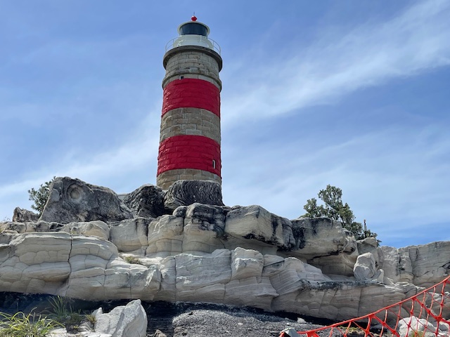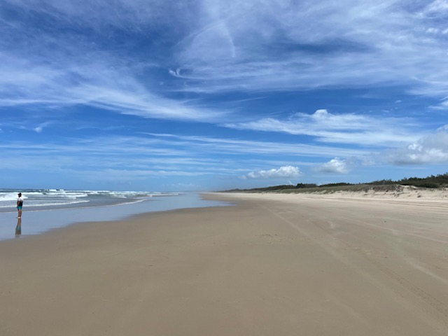 On Feb 22, 2024, we anchored in the harbor of Moreton, Queensland, Australia. Moreton Island is an island on the eastern side of Moreton Bay on the coast of South East Queensland. The Coral Sea lies on the east coast of the island. Ninety-eight percent of Moreton Island, which is over 27 miles long, is sand, and 95% of the island is a national park. We took a tender to the pier, and then a bus excursion, on a very bumpy sand road or on the beach, to the northern point of the island. The beaches were very wide, pristine and beautiful. We had a picnic lunch on the beach and were able to climb a large dune to see a lighthouse. Then we drove back to the pier, and reboarded our ship.