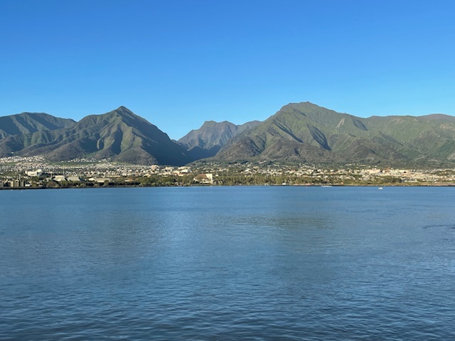 Today we landed at Kahului, Maui. The island of Maui is the second largest of the islands in the State of Hawaii. Our port of call was a second choice. Originally we were supposed to stop in Lahaina, an historic seaport on Maui, but our itinerary changed after a deadly wildfire destroyed most of Lahaina in Aug 2023. The town is still being cleared of debris before it can be reconstructed. Kahului proved to be a nice substitute, and it served as our starting point for an excursion along Maui’s North Shore where we saw spectacular scenery of the ocean, and stopped to see some waterfalls and beautiful flowers.