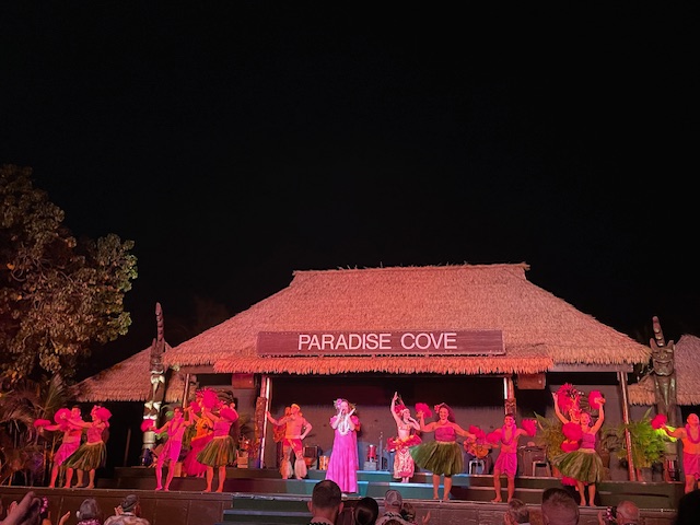 On the evening of Jan 20, we went to a traditional Hawaiian luau at the Paradise Cove. The luau was a lot of fun with traditional food, including a roasted pig, dancing and entertainment, and a beautiful sunset.
